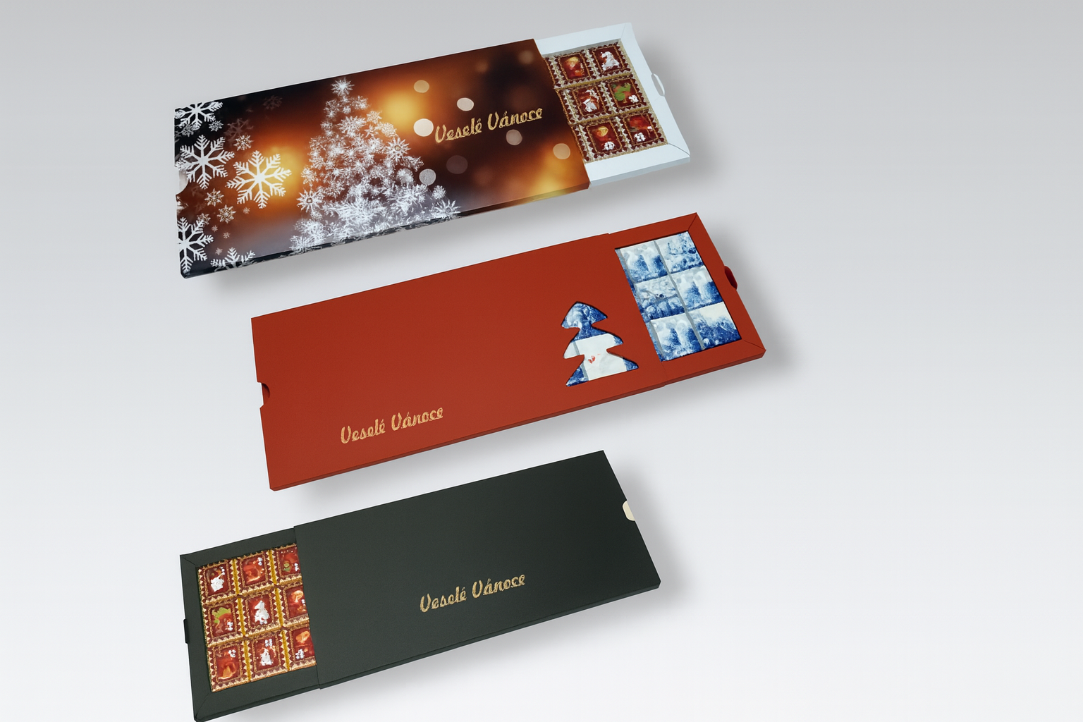 Mléčné nebo hořké 70% čokoládky 5 g s vánočním motivem mix